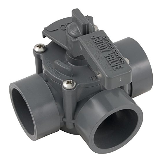 The Jandy- 3 port space saver Jandy diverter valve, CPVC, use as 1.5″ SKT or 2″ SPIGOT, grey