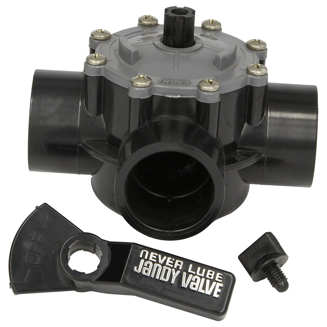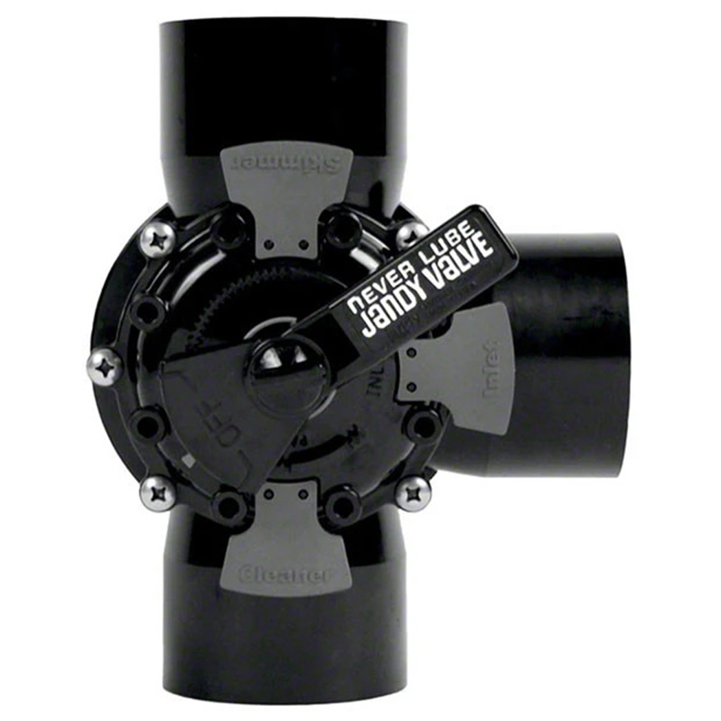 The Jandy 3-Port NeverLube Valve is designed for superior water flow control in pool and spa systems, suitable for pipe sizes from 1-1/2 inches to 2 inches. Constructed from durable CPVC, this valve offers excellent resistance to heat and chemical exposure, ensuring long-term reliability. It features NeverLube technology, which eliminates the need for lubrication and reduces maintenance. The internal and external stops provide additional control and flexibility, enhancing system performance. With its easy installation and operation, this valve is an ideal choice for optimizing water flow and achieving efficient pool management.