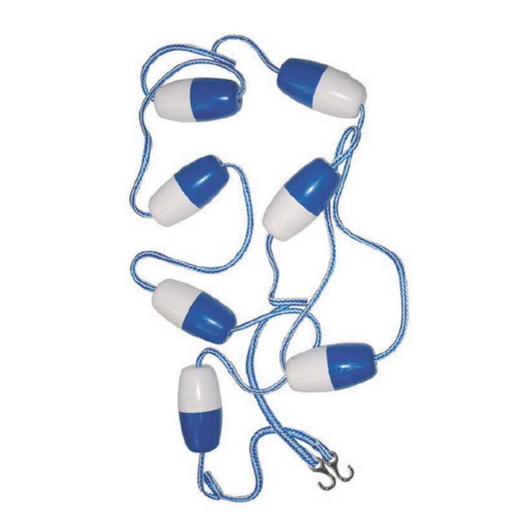 - The brightly colored floats are designed for high visibility and are evenly spaced along the rope, providing clear boundary lines.