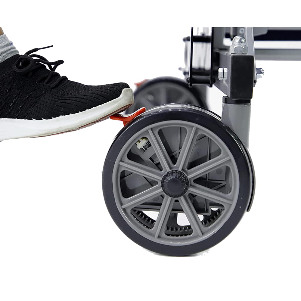 - 7 in. (18 cm) double wheels; all four wheels with step-on wheel locks for added safety.