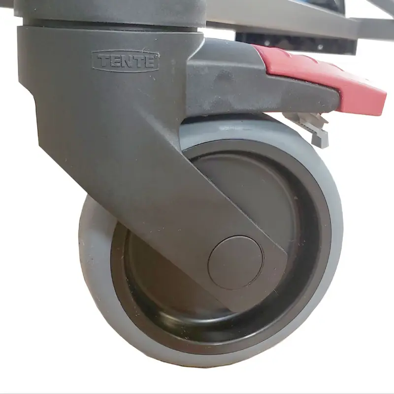 - 4 in. swiveling wheels with ball bearings (two wheels with step-on wheel locks for added safety)
