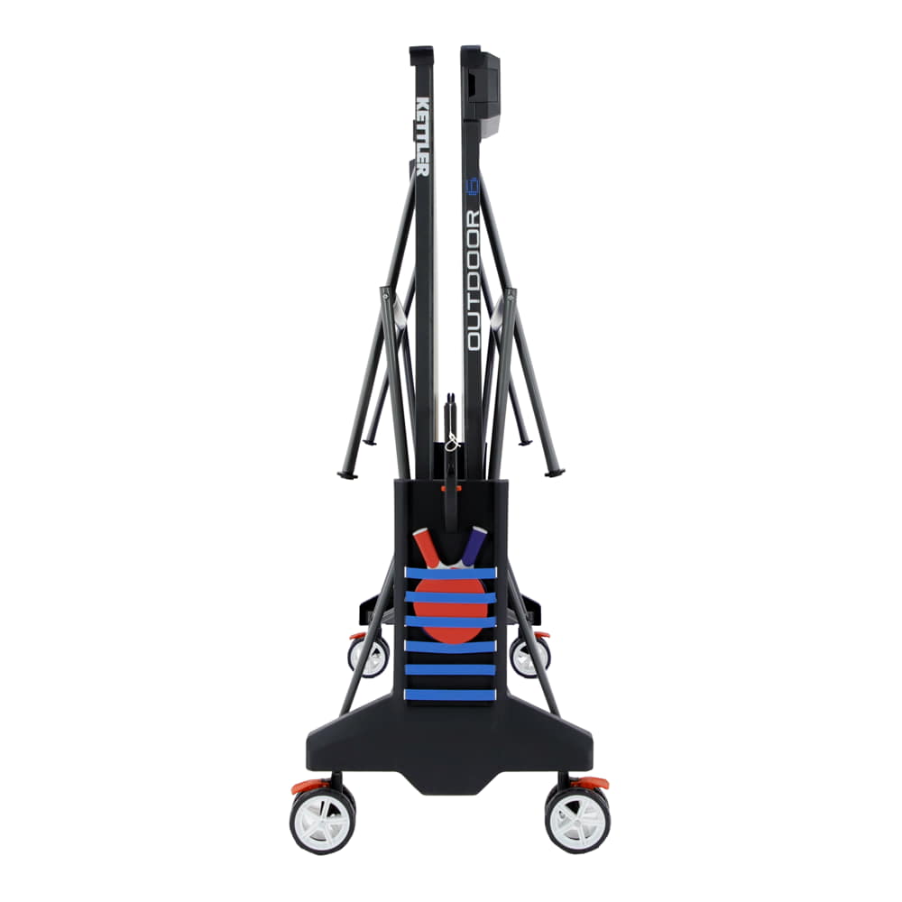 The Kettler Outdoor 6 offers state-of-the-art technology and all the brand’s well-known features. Its KETT-TEC6 outdoor weatherproof top provides durability for outdoor use and offers high performance with true ball bounce. The Outdoor 6 includes a one-hand locking mechanism for safe, secure and compact storage, a permanent net system, true play back position for solo play and large wheels with off-road tread for easy transport.