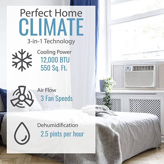 - HEAT/COOL AIR CONDITIONER: 12,000 BTU cooling capacity / 11,000 BTU supplemental heating capacity to effectively cool or heat your apartment, bedroom, living room, or home to the temperature that is right for you.