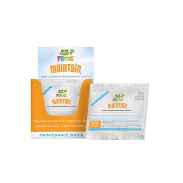 The King Technology 01-14-6132 For periodic shocking, use Frog Maintain, its one dose in one single easy-to-pour pouch for one easy maintenance shock to keep your water crystal clear. The hot tub is ready in 15 minutes of shocking. Once in the water Frog Maintain quickly dissolves and eliminates organic contaminants. Non-chlorine shock means you get the clean without any Cyanuric Acid, ever.