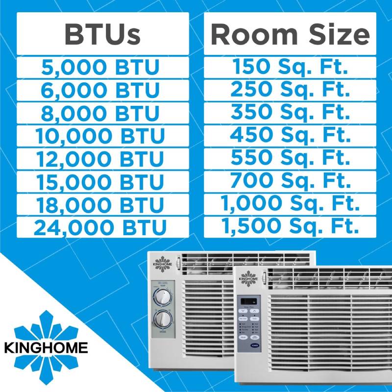 - Cool and dehumidify: The Kinghome KHW05BTM mechanical 5,000 BTU window air conditioner efficiently cools up to 150 sq. ft. with 1.6 pints of dehumidification. Ideal for bedrooms, living rooms, apartments, and any other environment!