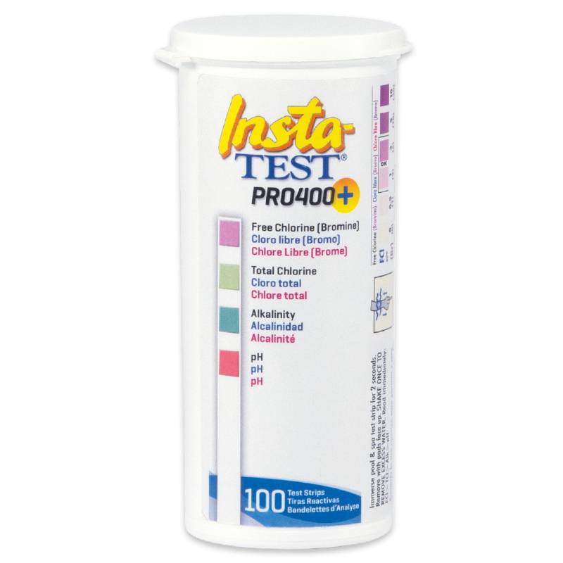 The Lamotte 12X1 Insta-Test Pro-400 designed specifically for on – site use by service pros, each vial contains 100 strips. Insta – Test PRO 400 Plus measures Free Chlorine 0 to 10 ppm, Bromine 0 to 20 ppm, Total Chlorine 0 to 10 ppm, Alkalinity 0 to 240 ppm and pH 6.2 to 9.0 with instant results. The instructions are in English, Spanish, and French.