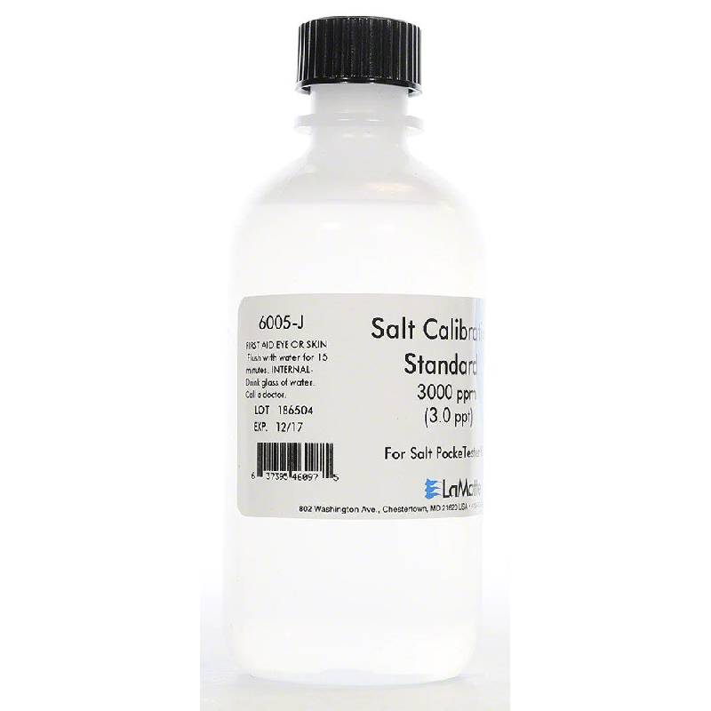 The Lamotte 6005-J is a 120 mL bottle of Calibration solution, 3000 ppm. It is used to calibrate the Salt Water Pocket Tester. Quality LaMotte brand test meter calibration fluid keeps your meter working accurately for years.