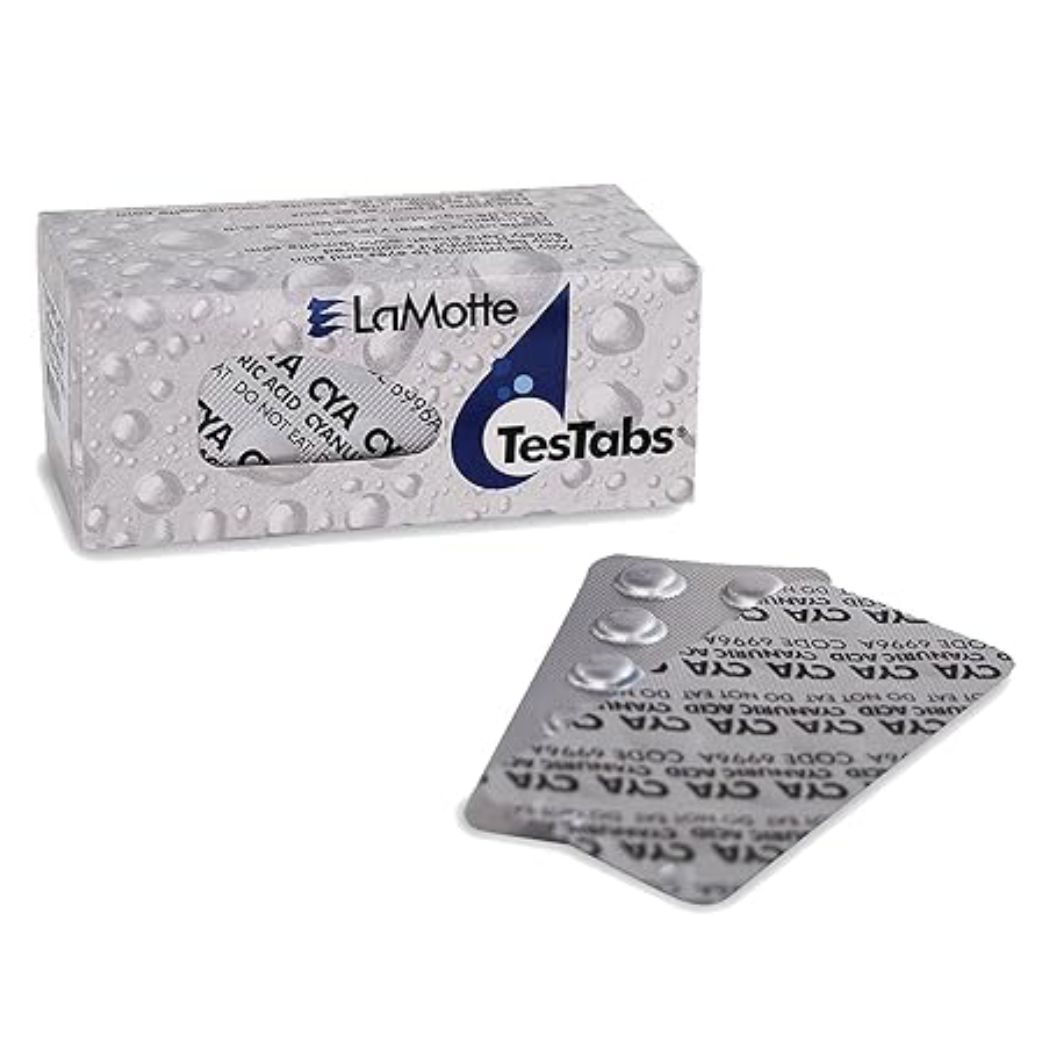 LaMotte 6996A-J ColorQ Pro 9 Cyanuric Acid Tablets are designed for use with the ColorQ Pro 9 test kit, enabling accurate measurements of cyanuric acid levels in pools and spas. This box of 100 tablets is perfect for pool operators who need to regularly assess water conditions to ensure effective chlorine performance. The tablets are easy to handle and dissolve quickly in water samples, providing reliable and quick results. They help in maintaining the effectiveness of chlorine in the pool by assessing the stabilizer levels, crucial for outdoor pools. Each tablet is precisely formulated to deliver consistent results.