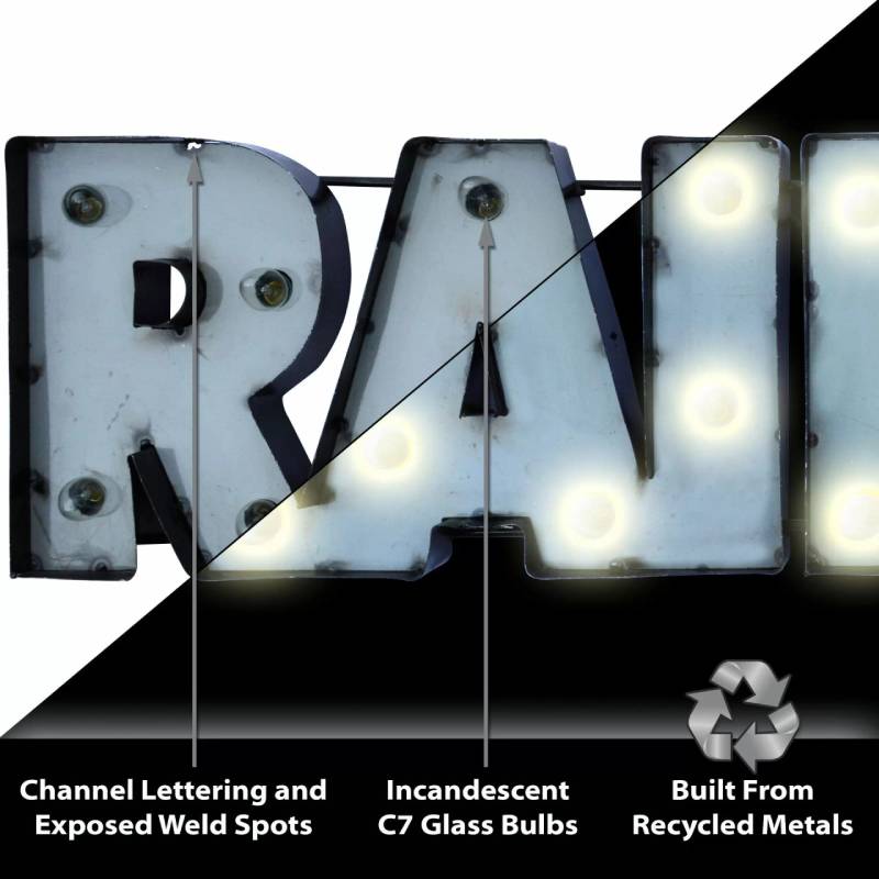 Light up your home or fan-cave with this Imperial Las Vegas Raiders Lighted Recycled Metal Sign. Suitable for indoor or outdoor use, this sign is built by hand from recycled metals and includes light strands with clear, incandescent C7 glass bulbs. An authentic style décor piece, the sign features channel lettering and exposed weld spots that give a unique, retro look to any space. This product is officially licensed by the NFL.