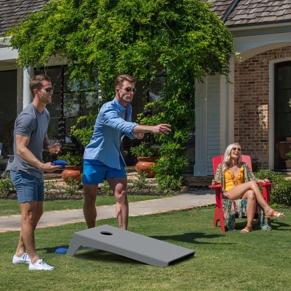 - Includes 2 cornhole boards and 2 sets of 4 beanbags