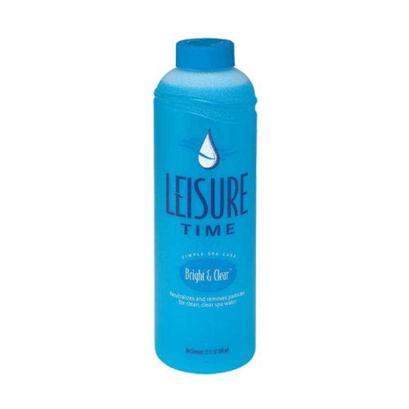 The Lesiure Time Bright & Clear (Calrifier) 32 oz.Powerful spa and hot tub clarifier quickly turns cloudy water into crystal clear water. Specially formulated for hot water treatment. This spa water clarifier utilizes unique polymer action to neutralize and remove dirt, soap, oily films and suspended particles for clean, fresh water. Helps spa filters perform at peak efficiency. Reduces the need for harsh spa bromine and spa shock chemicals by quickly removing dirt particles.
