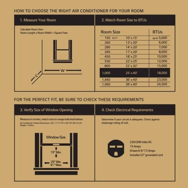 - Cools rooms up to 1,000 sq. ft. – LW1816ER is ideal for cooling medium rooms (25′ X 40′)
