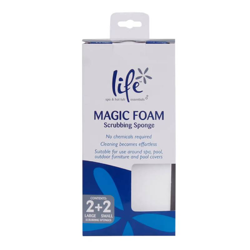 The Life Essentials LMS004 Magic Foam scrubbing sponge has a fine pore structure that helps to remove dirt and stains without additional cleaning agents. It also assists in the removal of scale build-up, mold and scum deposits around your spa, pool, outdoor furniture and pool covers.