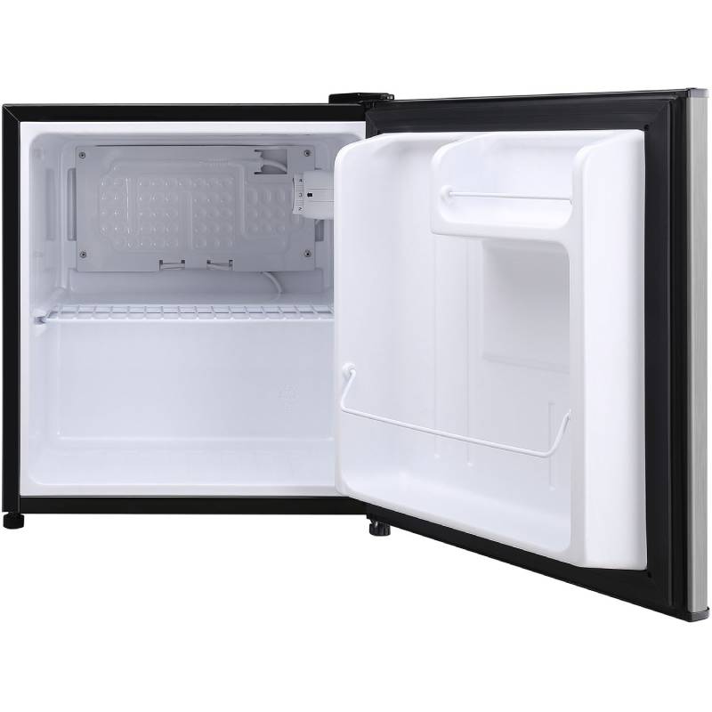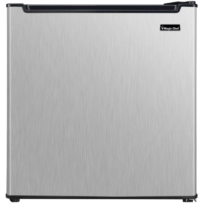 The Magic Chef MCAR170STE 1.7 CuFt. Black and Stainless Steel Mini-Fridge provides ample storage for your favorite snacks and beverages. The removable wire shelf and convenient in-door storage help keep your fresh foods organized, so you can quickly grab a late-night snack in your dorm room or find your lunch at the office. Plus, the reversible door and flush-back design provide additional flexibility in placement.