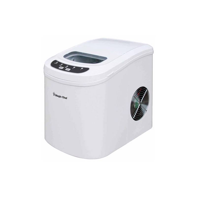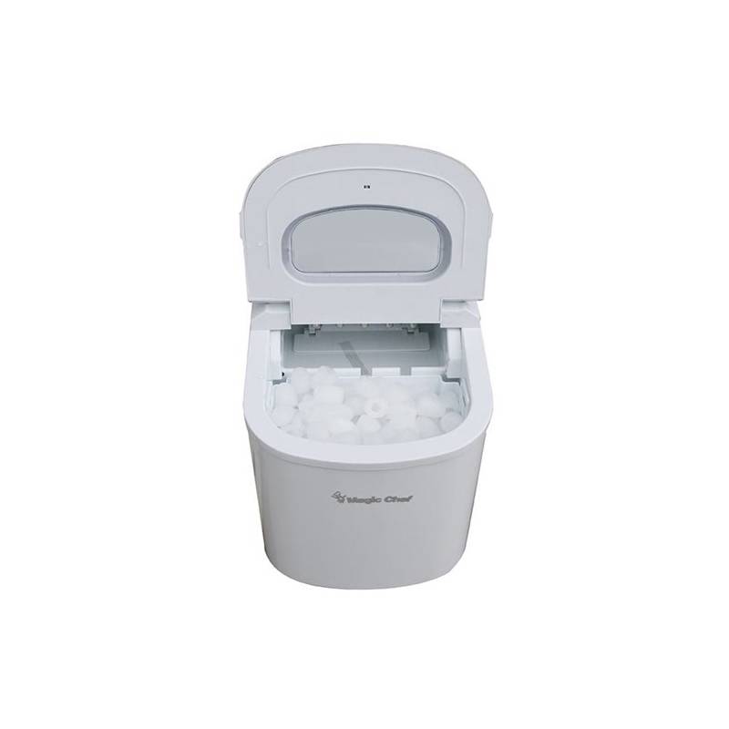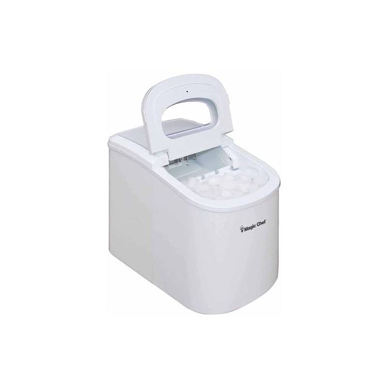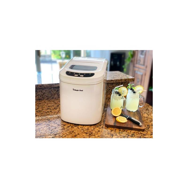 The Magic Chef Portable Countertop Ice Maker can make up to 27 lbs. of ice per day, providing you with a steady supply of ice. It is just what you need to continuously fill your ice bucket or beverage pitchers when you are entertaining friends and family. The ice maker can conveniently hold up to 1.5 lb. of ice at a time, and the digital control panel indicates when the storage bin needs to be emptied. The ice maker produces ice in 2 sizes in as little as 7 minutes. Not only do they provide a simple solution to producing large amounts of ice fast, the portable ice makers are compact and small enough to fit on your kitchen countertop or patio table.