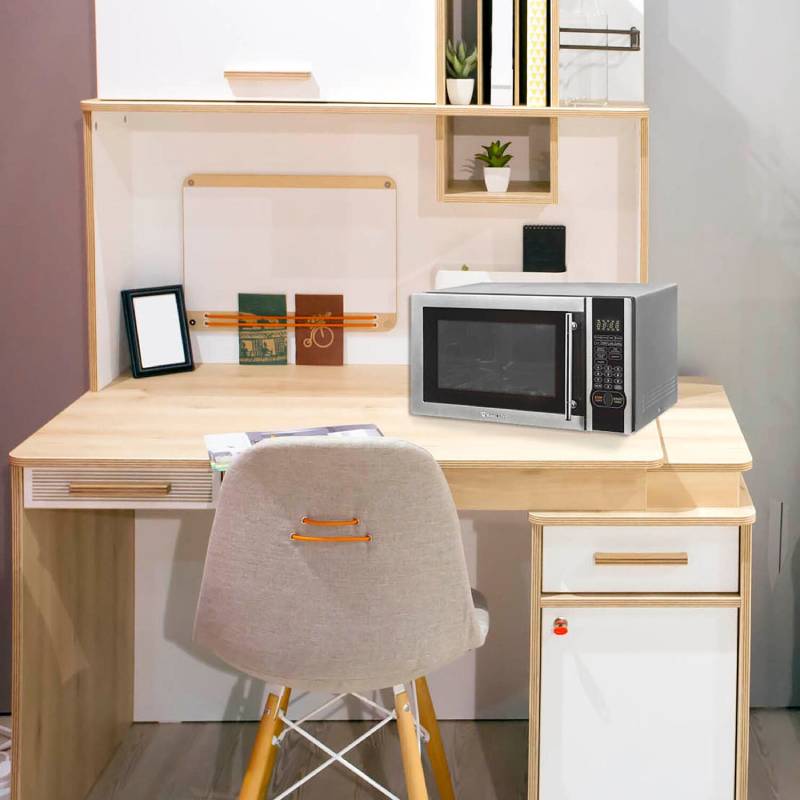 - 8 one-touch cooking modes: Popcorn, Potato, Pizza, Beverage, Soup, Dinner Plate, Fresh Vegetable,