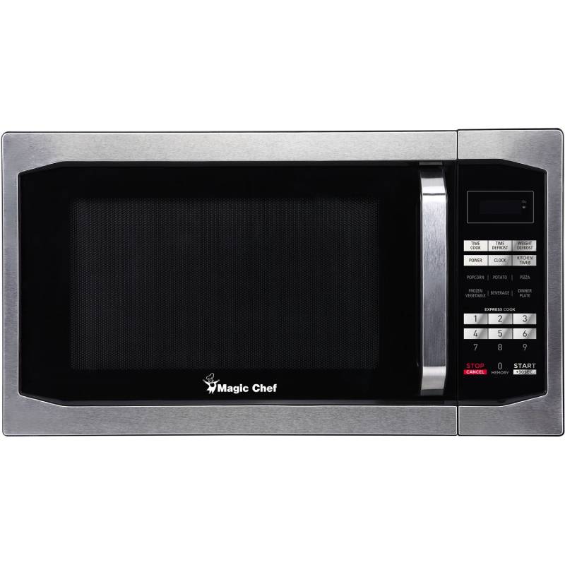 The Magic Chef MCM1611ST Stainless Steel 1.6 CuFt. Countertop Microwave 1100 Watts Prepare a snack or a meal with the Magic Chef 1.6-Cu. ft. countertop microwave oven with a stylish door handle. Quickly and easily prepare a wide variety of foods with 1100 watts of power, 10 power levels and 6 one-touch cooking programs to help you. Defrost by time or eliminate the guesswork and defrost by weight. The express cooking function and memory function streamlines your cooking time.