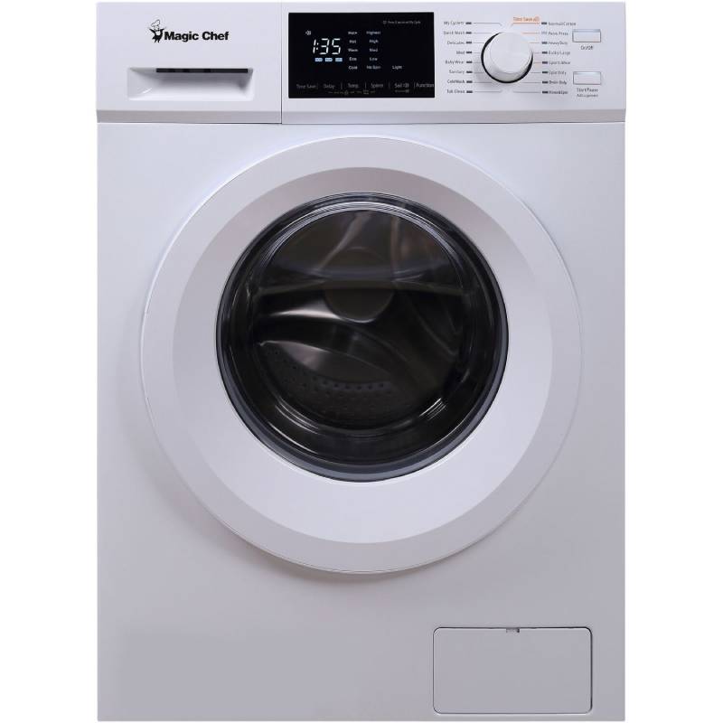 The Magic Chef MCSFLW27W White 2.7 cu. ft. washer makes laundry day easy. Perfect for limited spaces, including apartments and vacation homes, this versatile front load unit boasts 16 total cycles, including delicate, heavy-duty, normal, activewear and sanitary. Five wash/rinse cycles, along with five spin speeds, give your garments the proper care they deserve. It is a great solution when space is limited.