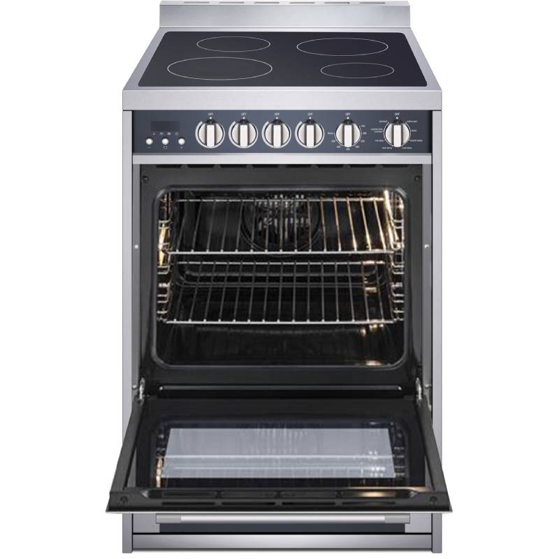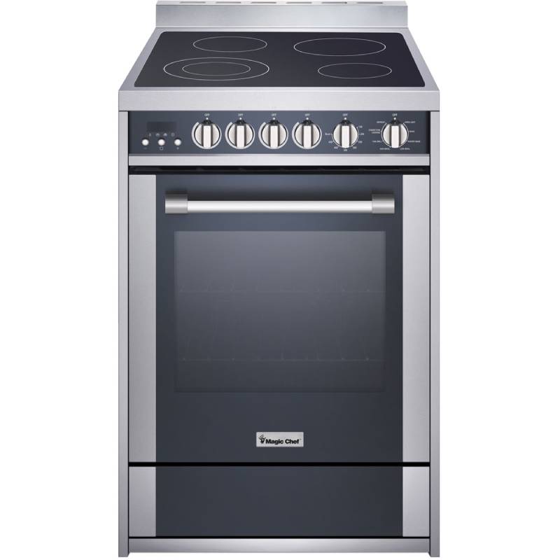 The Magic Chef 24-inch wide freestanding electric range is the perfect fit for smaller kitchens, yet lets you prepare family-size meals. The 2.2-cu. ft. capacity oven features seven cooking modes including Convection cooking. The smooth ceramic cooktop, with four elements, allows for easy cleaning. Plus, the stainless steel exterior with a mirror glass finish looks stylish in any kitchen.