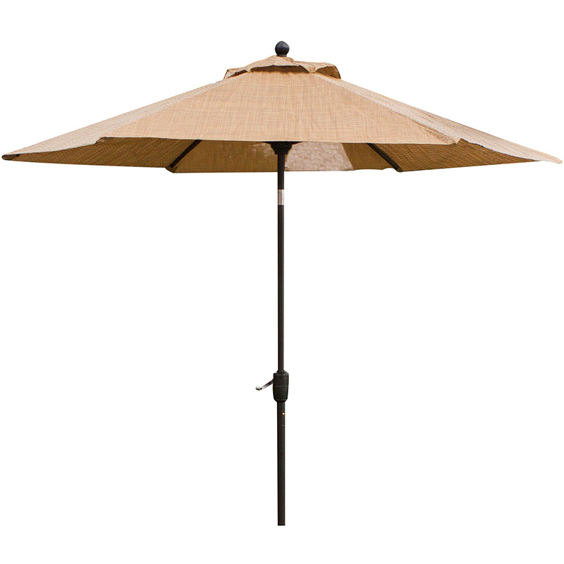 - 9-ft. table umbrella with crank lever for swift opening and pivot feature to adjust shade coverage