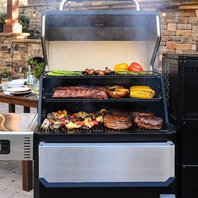 - Includes reversible smoke + sear cast-iron grates for low and slow smoking or high heat searing