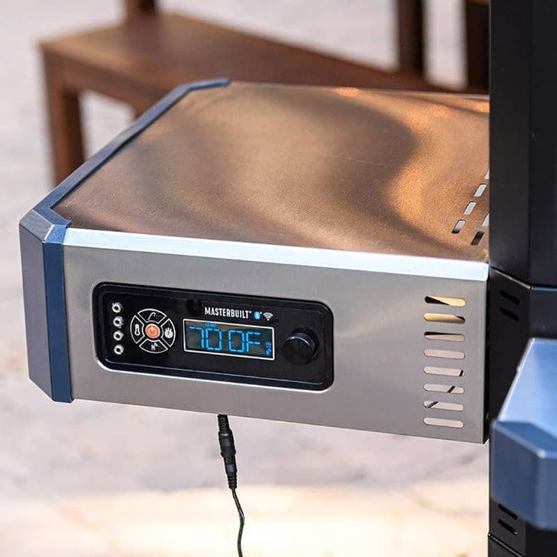 With the Masterbuilt Gravity Series 1050 Digital Charcoal Grill + Smoker, you can smoke, grill, sear, bake, roast and so much more. Set the temperature on the digital control panel or your smart device and the DigitalFan™ maintains the desired cooking temperature. The GravityFed™ charcoal hopper holds up to 8+ hours of charcoal and gravity ensures you have constant fuel to the fire. The reversible smoke + sear cast-iron grates and FoldAway™ warming + smoking racks add up to a total of 1050 square inches of cooking space. Master the art of charcoal grilling and smoking with Masterbuilt.