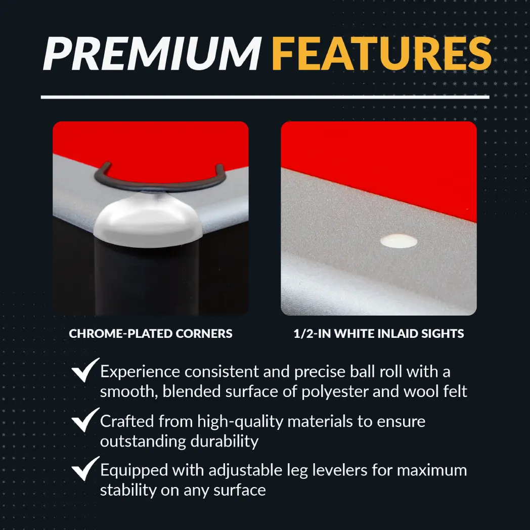 - Thick dual poly sealed “CARB” certified MDF with durable high-quality Red Felt