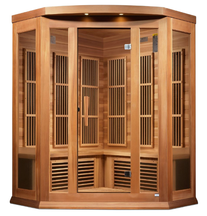 Maxxus 3-Person Near Zero EMF FAR Infrared Corner Sauna, Red Cedar