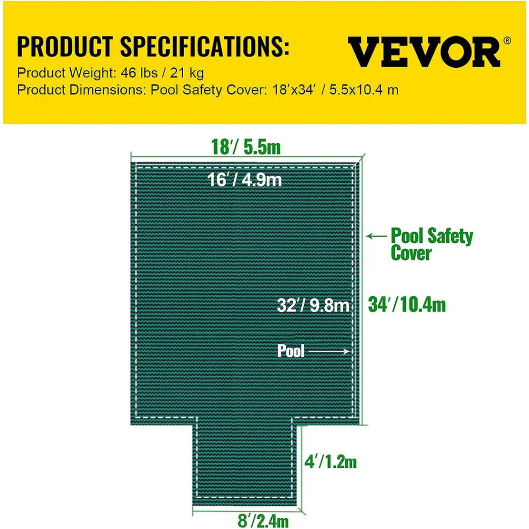 Merlin SmartMesh Rectangle Safety Cover, 16′ x 32′ with 4′ x 8′ Right Step, Green Features: