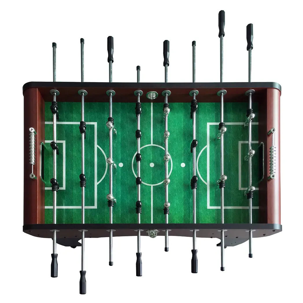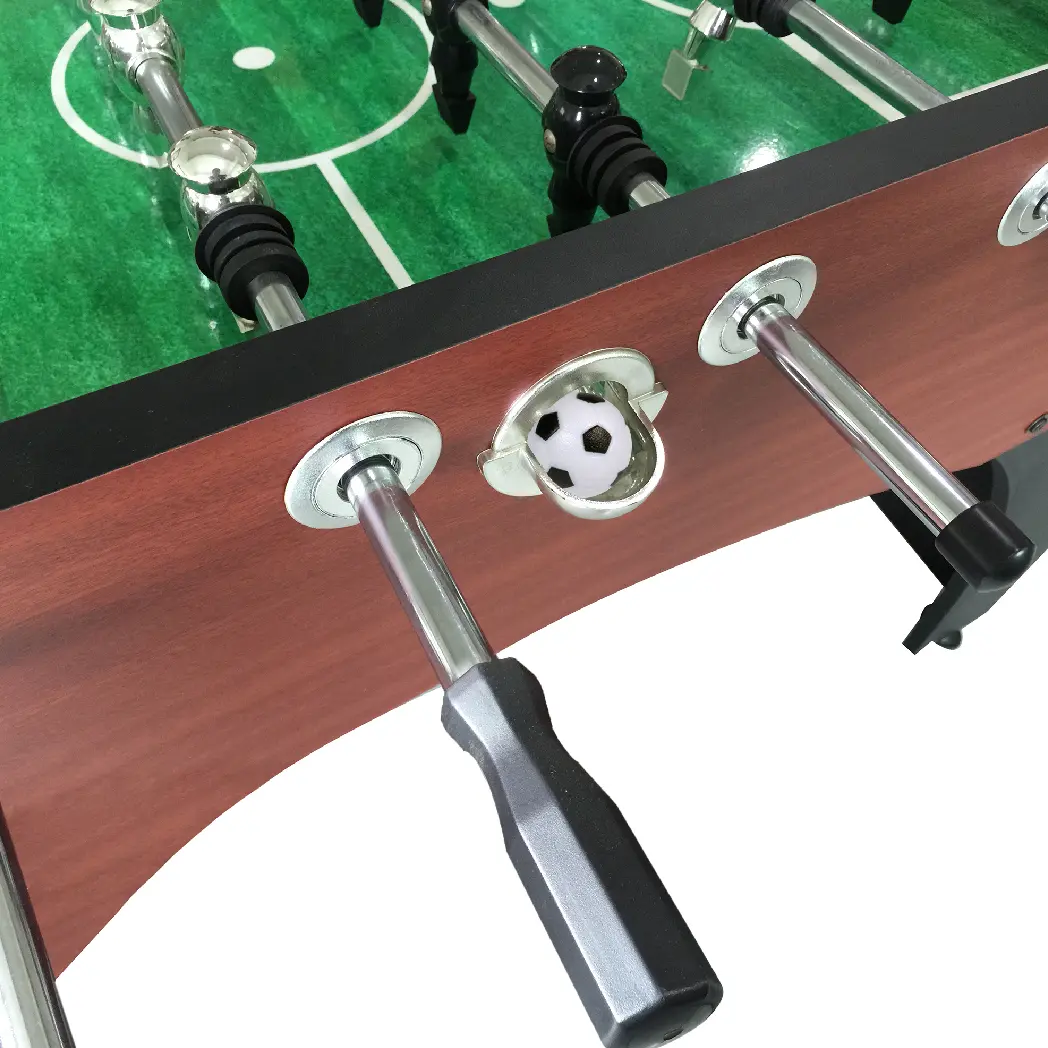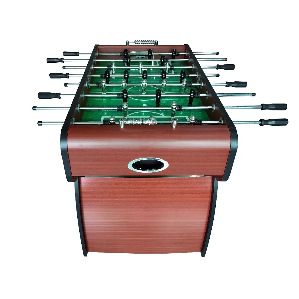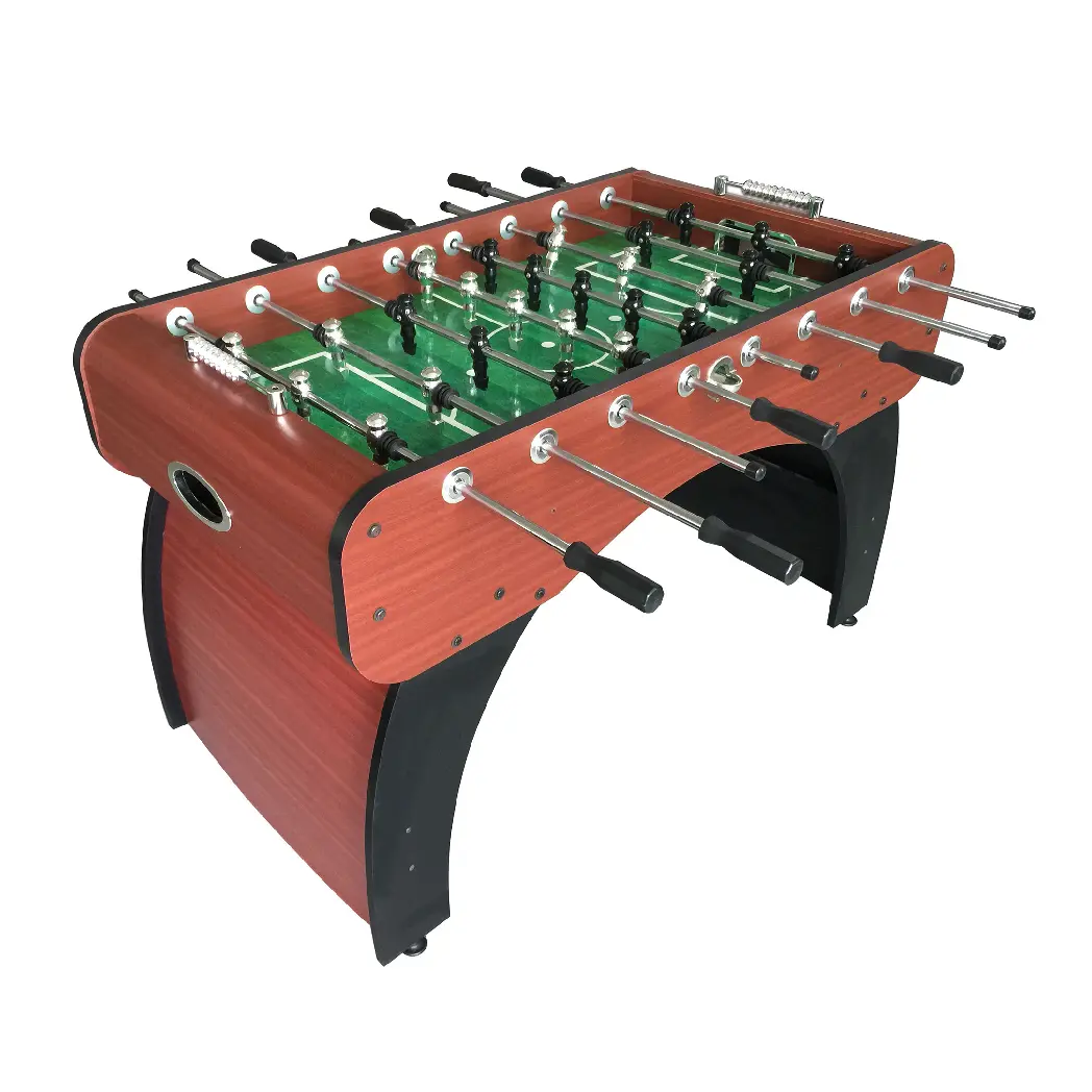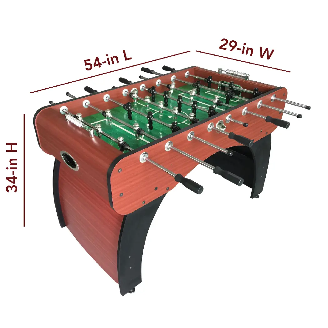 The Metropolitan 54-Inch Foosball Table doesn’t have that same old boxy look. Add a little flair and contemporary style to your game room with the Metropolitan 54-Inch Foosball Table – a sure bet to become your household’s preferred game room piece and keep your family and friends entertained for years to come. The sleek contemporary arched cabinet is fully supported by an arched pedestal base engineered for strength and crafted from CARB certified MDF quality material. The attractive cherry and black melamine cabinetry combine to create an elegant looking table that plays great. Includes two end ball returns, manual scorers, adjustable leg levelers and four quality foosballs.