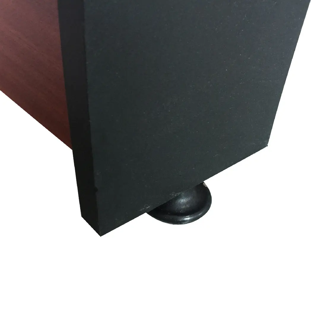 - Sturdy CARB certified MDF pedestal base finished in a black melamine includes stabilizing leg levelers