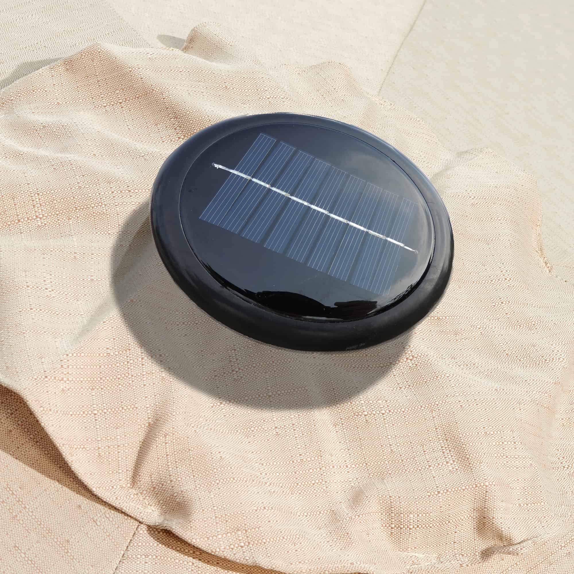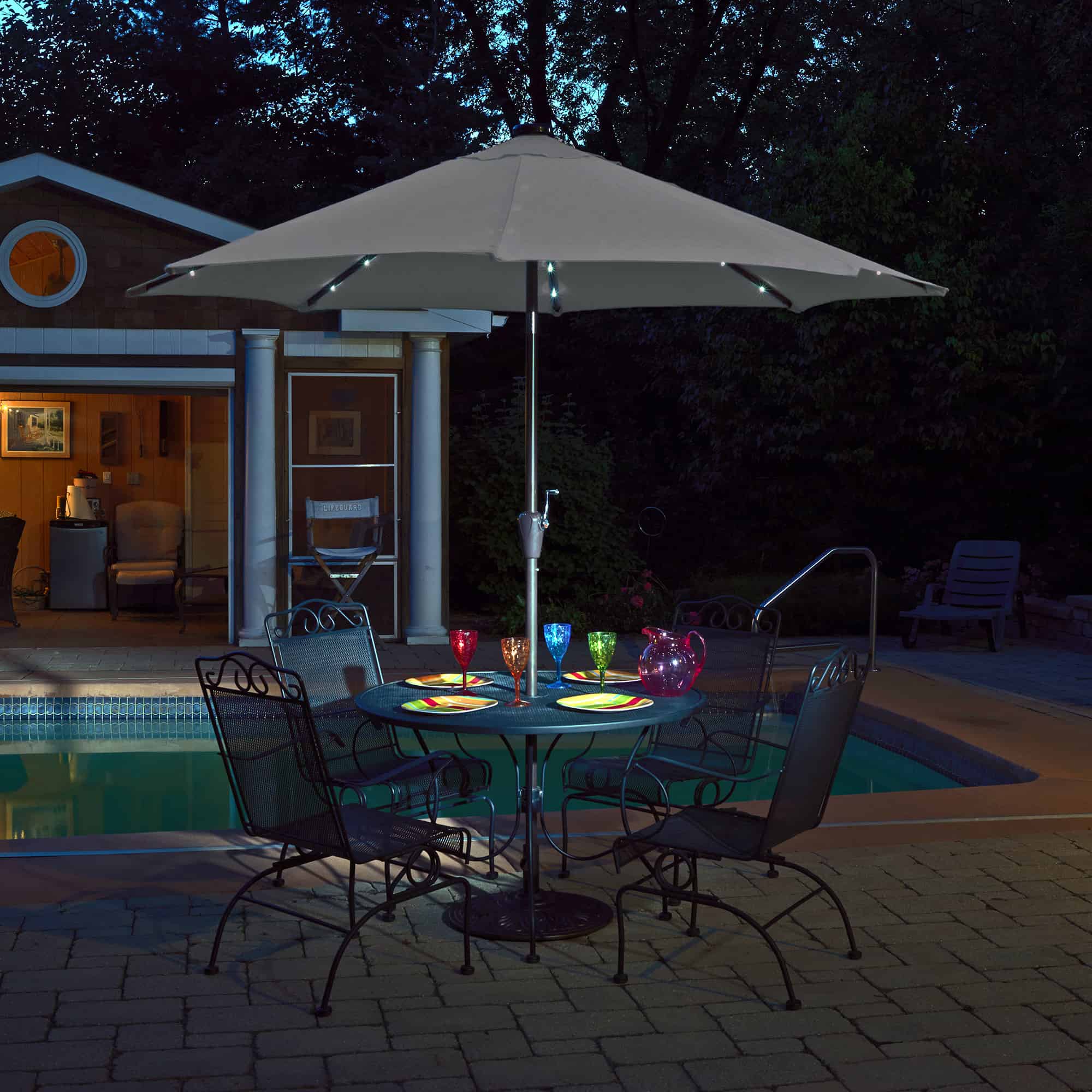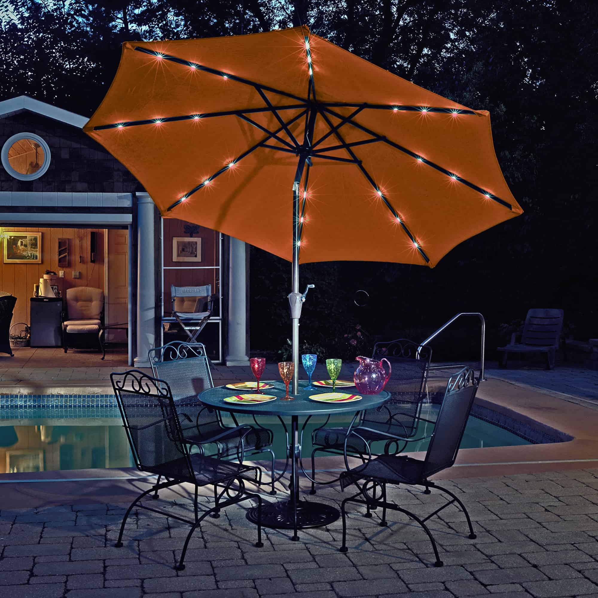 - SOLAR POWERED – Enjoy your patio day or night with the Mirage Fiesta Umbrella. Its canopy creates up to 57 square feet of shade during the day and features a solar panel that powers 24 LED lights, so you can brighten up your night when the sun goes down.