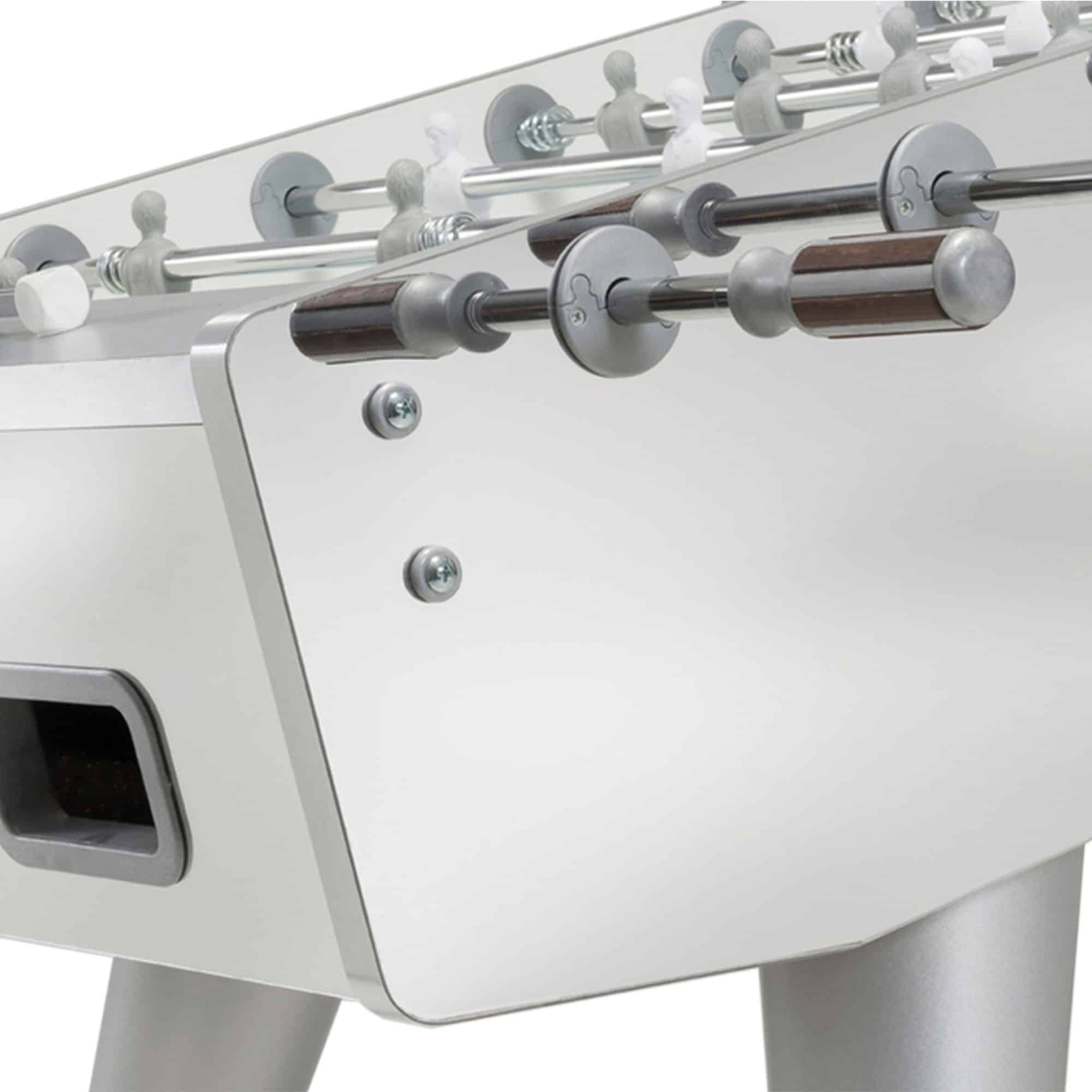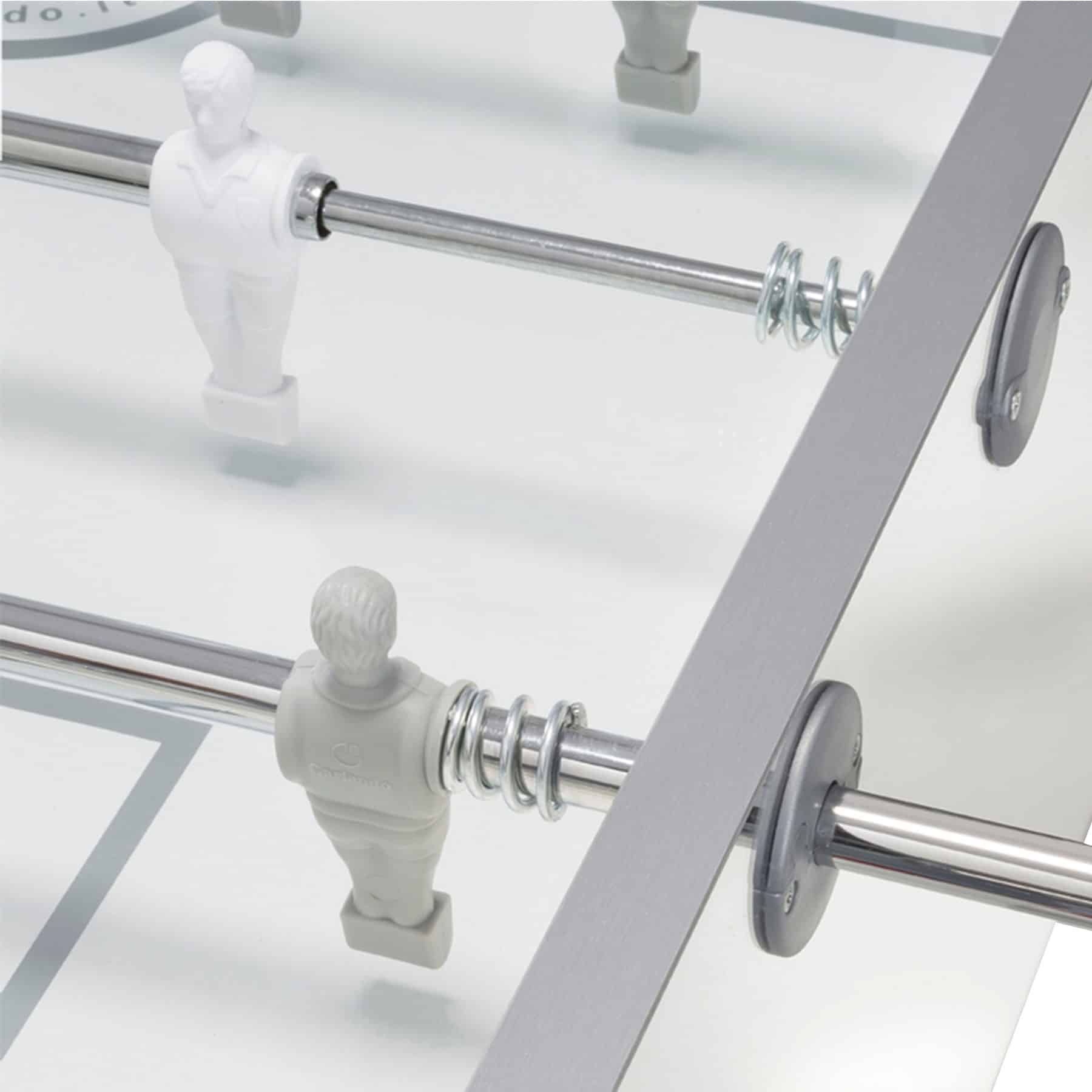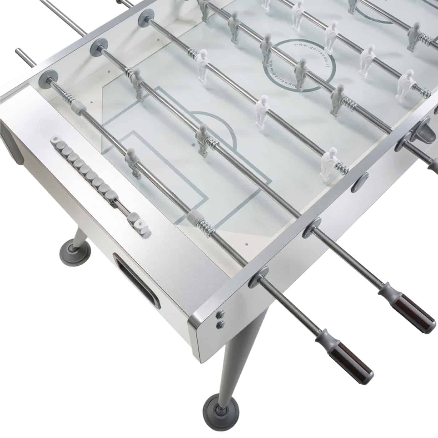 The Mirror Image Foosball Table is a mirror-like football table. Below a sophisticated surface, this mirror-like foosball table hides a sturdy construction obtained by originally juxtaposing different materials like wood, metal, and reflective surfaces. Make your home an exclusive place by furnishing your living room or your playroom with a design object which perfectly blends with any surrounding decor. When equipped with telescopic safety bars the table ensures the highest protection for children’s eyes and face. Garlando Image complies with the harmonized European rules EN on safety.