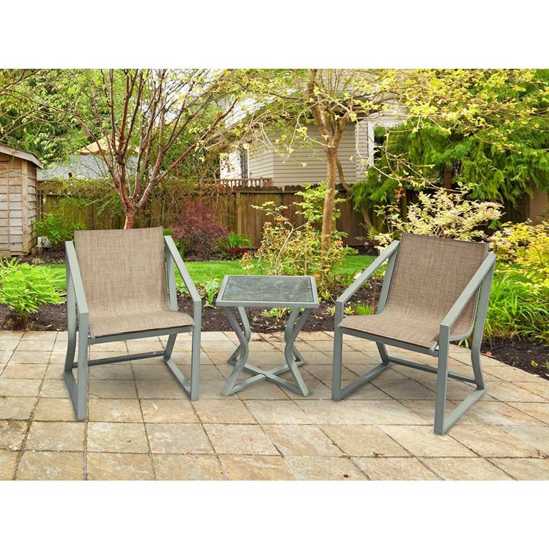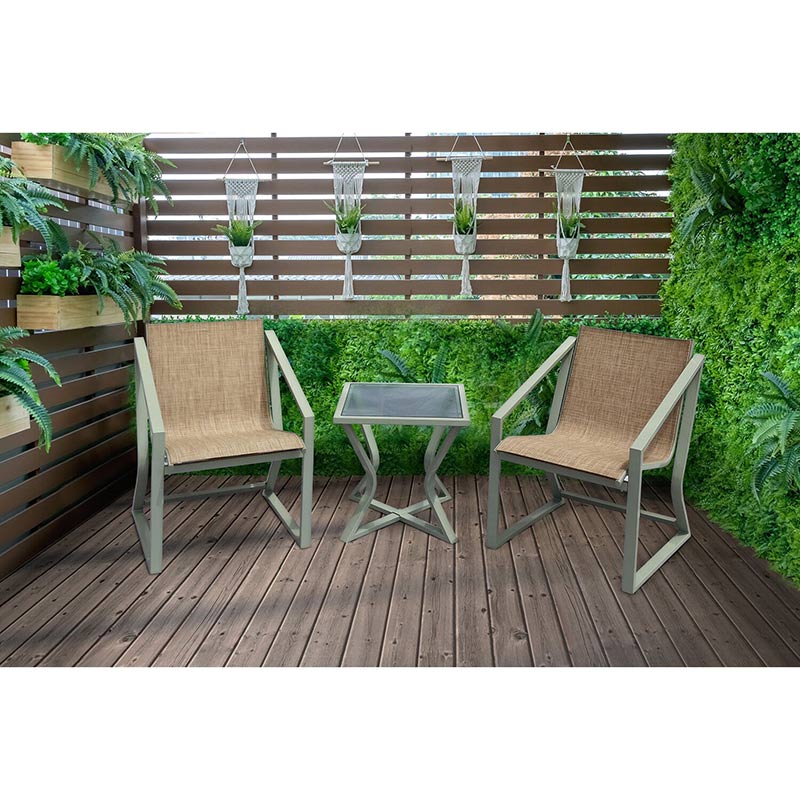 Mod Furniture Asbury 3 Piece Seating Set: 2 Sling Chairs and Glass Top Side Table