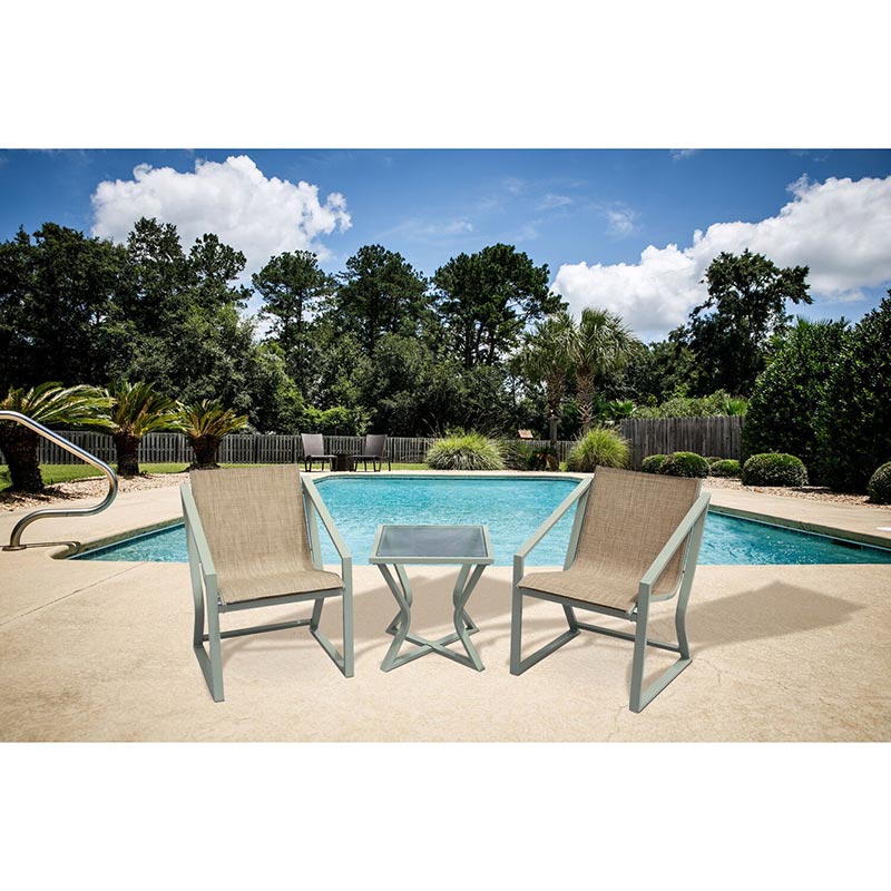 Mod Furniture Asbury 3 Piece Seating Set: 2 Sling Chairs and Glass Top Side Table Features: