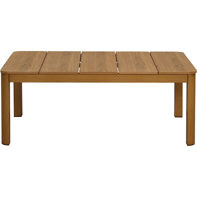 - 44” x 17” coffee table with polywood top and aluminum frame