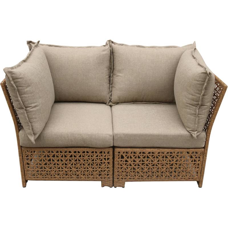 Level up your outdoor space with the Emma 5-piece set. Perfect for any yard, balcony, porch or patio, this deep seating set can accommodate larger parties or intimate get-togethers alike. This set includes five convertible pieces that can be reconfigured to suit any sort of get-together. The two armless chairs, two corner chairs and ottoman can be made into one giant sectional sofa or reconfigured as a loveseat and two side chairs with the ottoman functioning as a coffee table depending on your gathering. The collection is crafted using hand-woven wicker over sturdy steel frames, giving you both durable construction and stylish boho accents. Each piece of the set is made using all weather materials, built to handle whatever life throws at them and you.