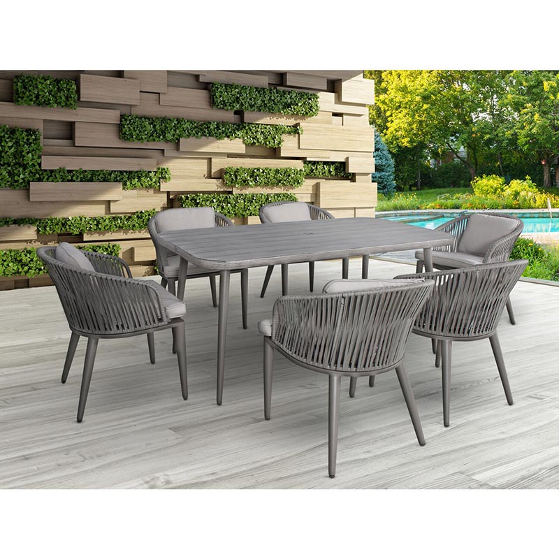 Mod Furniture Riley 7 Piece Dining Set: 6 Rope Cushioned Chairs and Faux Wood Top Table