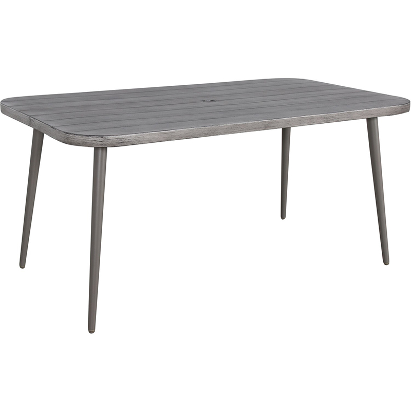 - 63 in. x 35 in. dining table with slat top, complete with 2 in. hole for umbrella (umbrella not included)