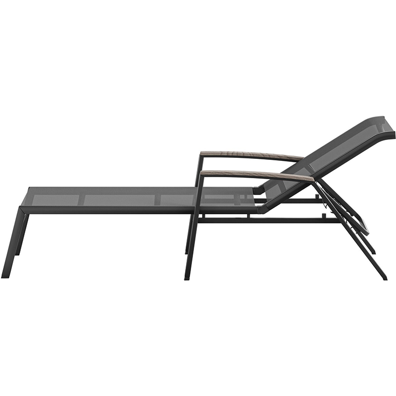 - MODERN MIXED MATERIAL DESIGN: The Jace Collection by Mod Furniture is the definition of modern design. Take a seat in the super sleek and comfortable sling chaise lounge chair. The grey frames with faux wood accent arms and grey sling fabric really make this set unique and stand out to your guests. Perfect set up in any backyard, patio, porch, roof deck, or pool for ultimate lounge time.