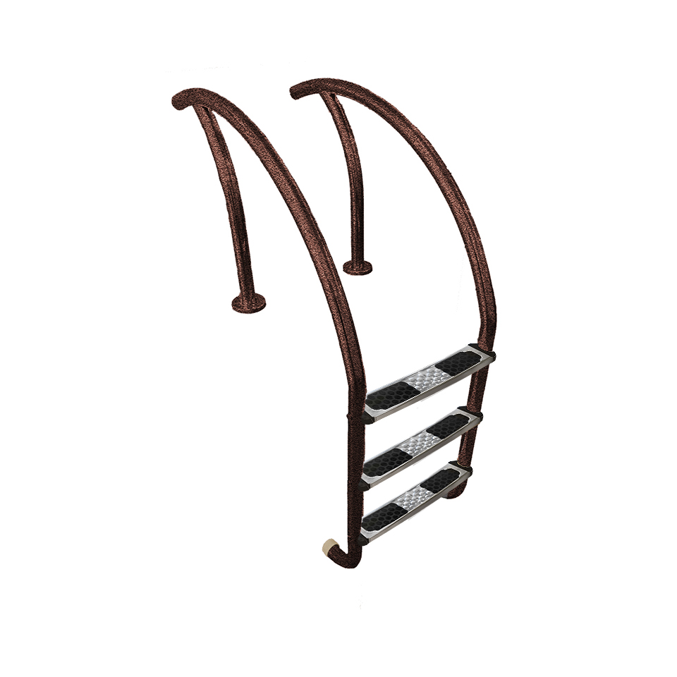 The Modern Water Cooled Ladder is the solution to scorching hot ladders on a hot summer day. By using water circulation, this handrail stays within 15 degrees of the temperature of your pools water. This ladder This ladder is constructed of a 1.90” high–quality stainless steel tube with a wall thickness of .065”, while having the color options of white, sand, polished or one of the premium powder coat colors that include copper or silver vein.