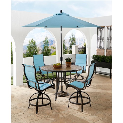 - Set includes four swivel chairs and a 56 in. counter-height table