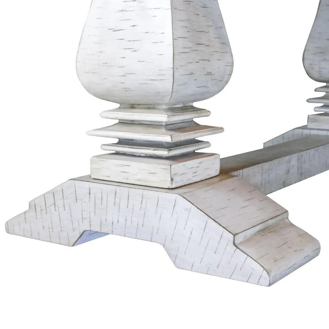 - Sculpted pedestals and a driftwood finish adds a charming, farmhouse touch