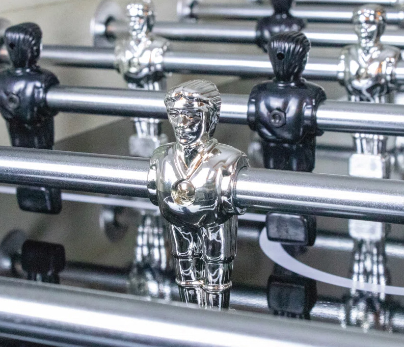 - Players are threaded on 16-mm chrome-plated steel rods with E Z spin bearings for fast performance