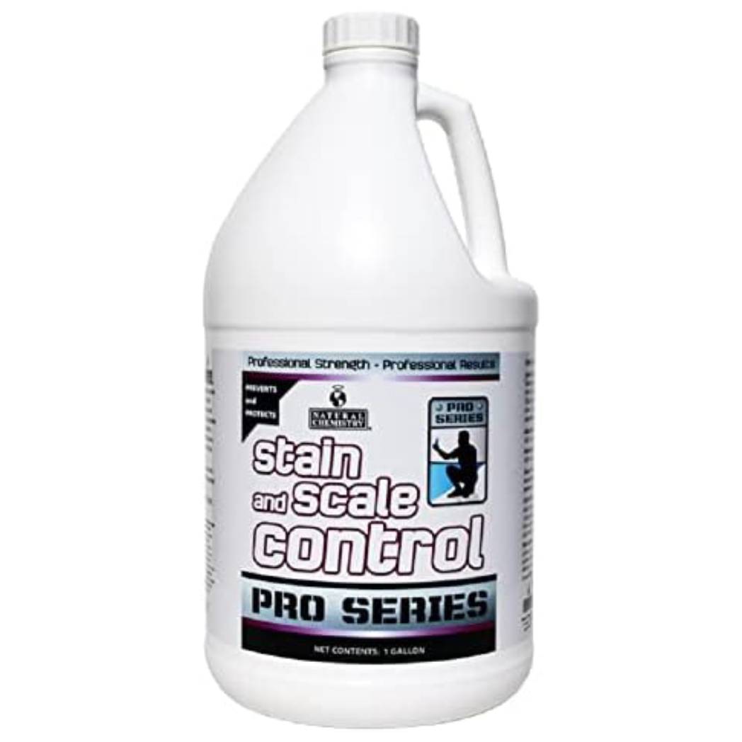 The Natural Chemistry NC20701E Pro Series Stain & Scale Control helps protect pools from the damaging effects of scale buildup and staining due to excessive calcium, iron, copper and other minerals. It works without the use of phosphates or harsh acids. The Pro Series also works well at reducing scale from forming on chlorine generator cells and UV crystal lens in order to help maintain optimal performance.