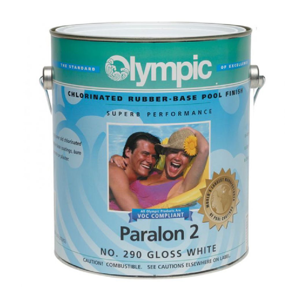 This premium-grade Olympic Paralon 2 Chlorinated Rubber-Base Pool Finish is recommended for refinishing existing chlorinated coatings. Paralon 2 has a pleasing soft satin, low sheen appearance with high water resistance. Two coats of Paralon are recommended for best results. On unusually porous, bare surfaces a third coat may be required. Coverage: 250-275 sq. ft. average per gallon.
