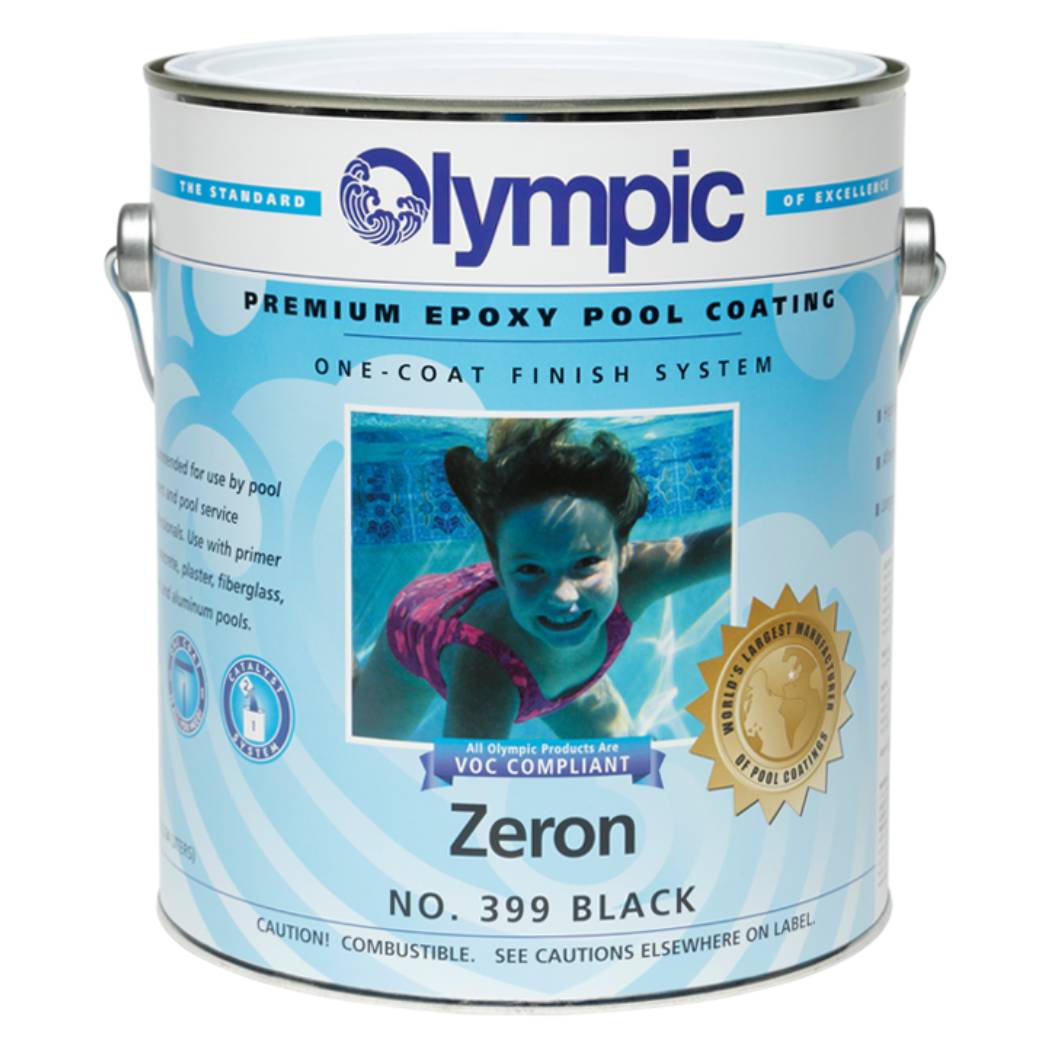 The Olympic Zeron One-Coat Epoxy Pool Coating is a high-solid, one-coat epoxy pool coating that outperforms other pool finishes. Recommended for both the pool service professional and the experienced do-it-yourselfer, Zeron over primer yields up to eight years of dependable, low maintenance service. Epoxy swimming pool finishes are the most durable and attractive of all types of swimming pool coatings. Epoxy coatings are highly recommended for finishing newly sandblasted surfaces, rough discolored plaster, fiberglass, steel, or aluminum pools.