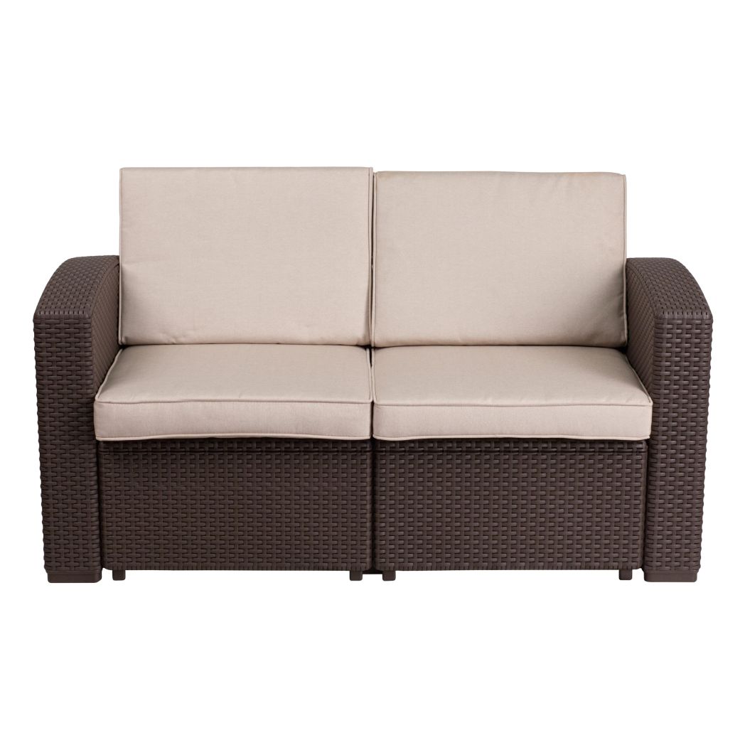 OSC Designs OSAWLOVESEATCHOC Faux Rattan Patio Loveseat, Chocolate Brown Features: