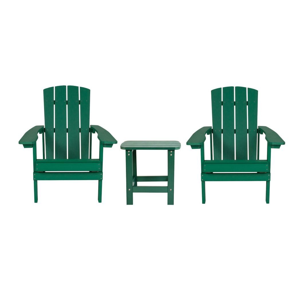 OSC Designs OSCHADTABLESETGN Charlestown Adirondack Chair & Table Set, 3-Piece, Green Features: