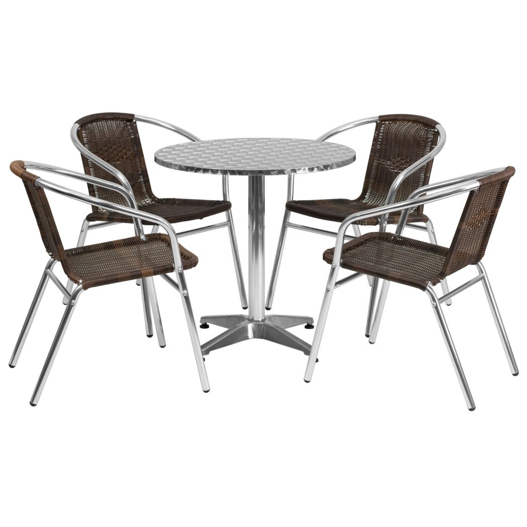 OSC Designs OSPATIOSETMTL5RNDBN Round Aluminum Patio Set, 5-Piece Features: